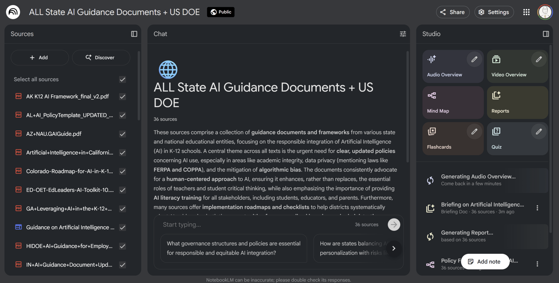Below, I’m sharing with you a NotebookLM notebook with 36 state AI guidance documents for schools — that you can open and interact with!